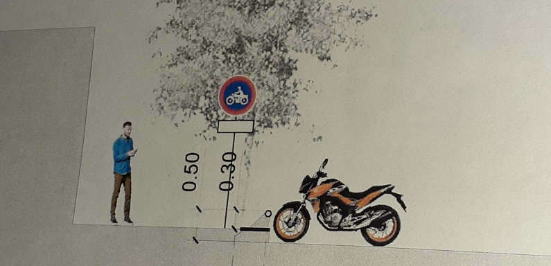 El proyecto aprobado en la sesión de este miércoles dispone que en ese sector habrá "espacios reservados para el estacionamiento de motovehículos, sobre la calzada". El plano adjunto que elevó el Ejecutivo contempla once lugares en los últimos 15 metros de cada cuadra, con un caño bajo que separa ese espacio de la acera y prevé el aparcamiento de las motos a 45 grados.