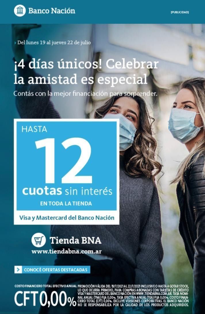 Bajo el lema "Celebrar la amistad es especial", desde el lunes 19 de julio y hasta el jueves 22, inclusive, se podrá acceder a descuentos de hasta el 30% en la compra de computadoras portátiles, celulares y pequeños electrodomésticos, con tarifas que van desde los $2.000 por mes para la compra de televisores con tecnología Smart.