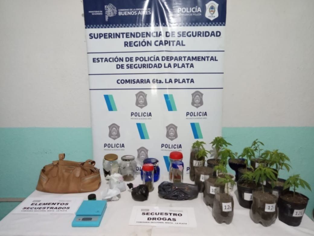 Finalmente se detuvo al principal implicado y además se secuestraron 170 gramos de marihuana, plantines, balanza de precisión y distintos elementos de interés para la causa como una cartera que sería de la mujer asaltada y partes de una moto.