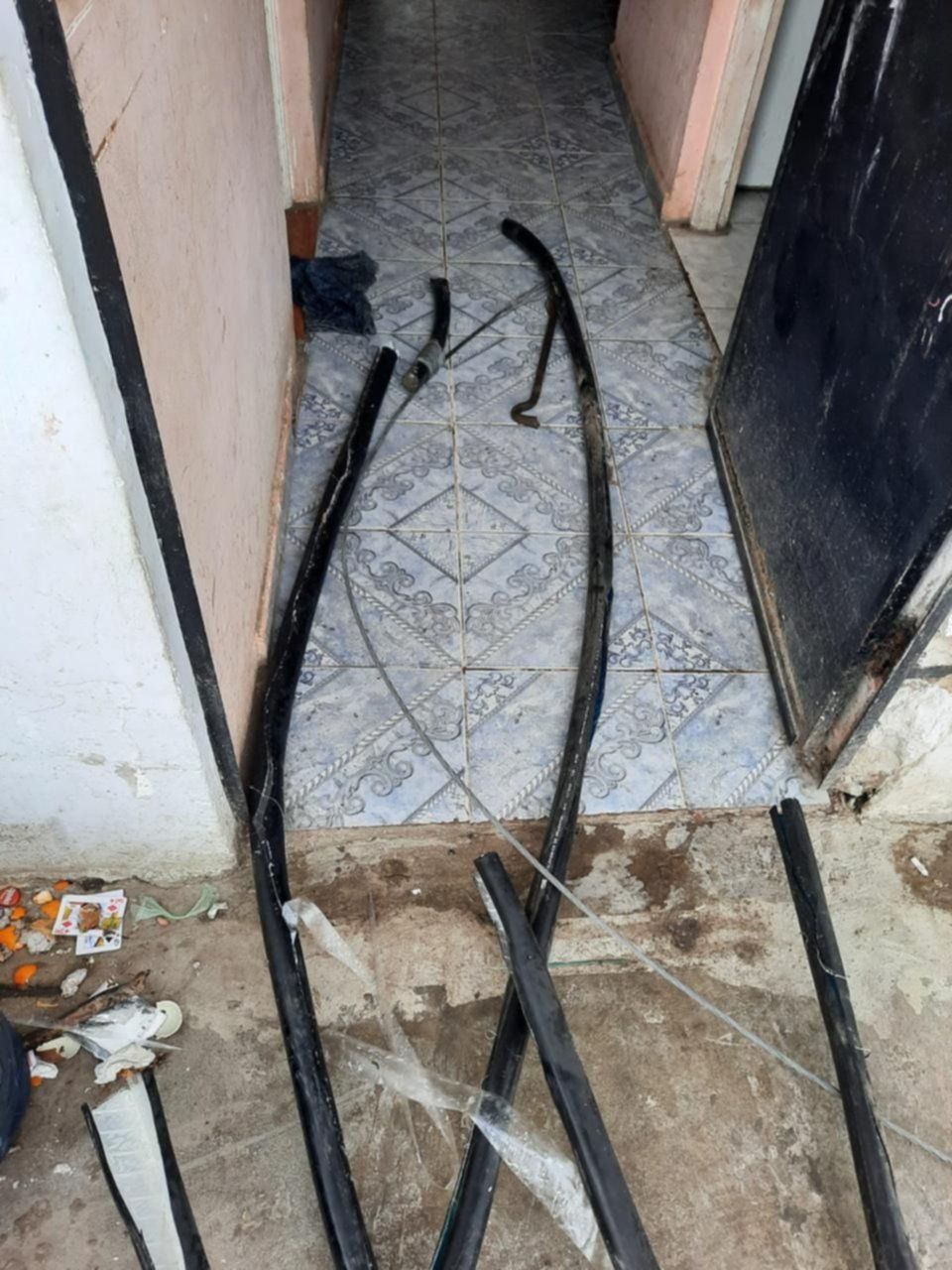 En el procedimiento fueron secuestradas una sierra de mano con hoja de corte para metal, una barreta palanca del tipo sacaclavos de hierro y una escalera de madera plegable de dos cuerpos. Además, los policías incautaron un tramo de cable de tendido telefónico y una motocicleta con pedido de secuestro activo.