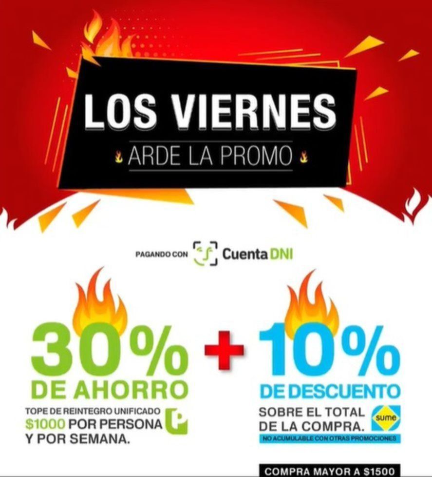 Se trata del supermercado Sume, ubicado en 66 entre 115 y 116, que anuncio un 10% extra que se suma al 30% que ya ofrece la Cuenta DNI para sus usuarios en todas las compras que se realicen los días viernes por un monto superior a $1.500.