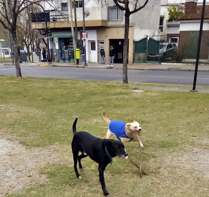 Cuando él se queda de visita “cuida muchísimo a Petra”, contó Patricia y explicó: “Vamos a la plaza y no deja que ningún otro perro o persona se acerque, la protege”.