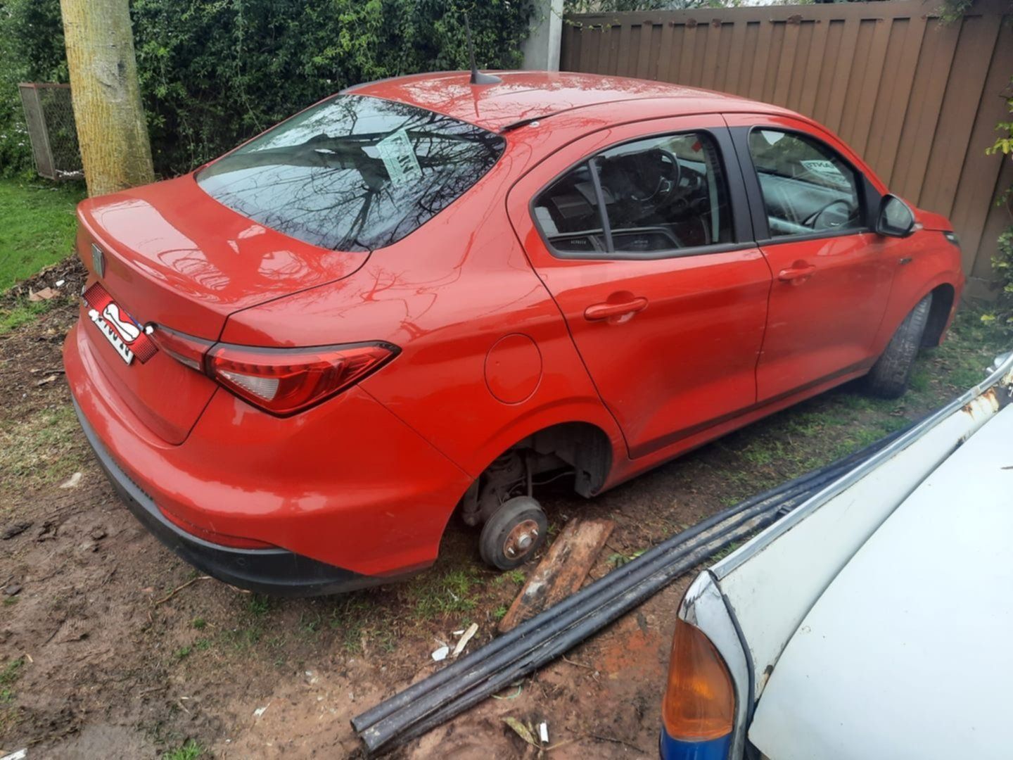 El otro incidente se registró el lunes, entre las 14 y las 16, en 12 B entre 459 y 460. El propietario había dejado estacionado el auto en la puerta de su casa y, al salir, se dio cuenta que le faltaba la rueda trasera del lado del acompañante. También publicó el robo en las redes sociales, adjuntando una foto del rodado.