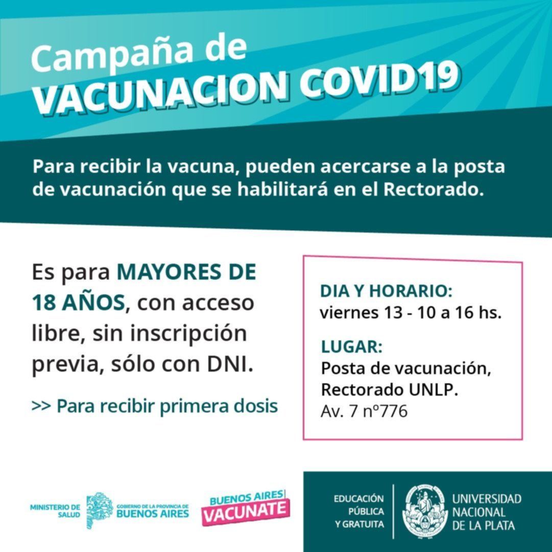 La nueva posta funcionará este viernes 13 en el horario de 10 a 16 y, según adelantaron las autoridades de la Secretaría de Salud de la casa de estudios, el operativo sanitario estará orientado a la aplicación de primeras dosis.
