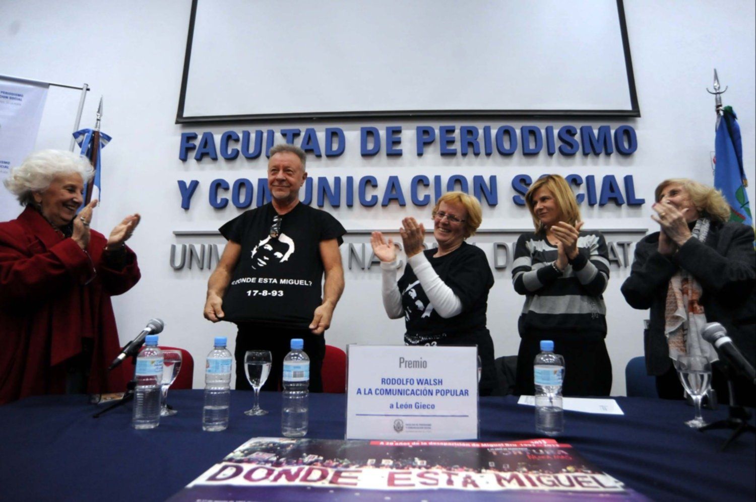 Unos días después de que el caso estallara en los medios de comunicación, el secretario de Derechos Humanos bonaerense, Juan Scattolini, le ofreció una audiencia. Fue el primer funcionario con el que se reunió. Ese día conoció la Gobernación y afrontó, por primera vez, una conferencia de prensa. Al salir del despacho de Scattolini, la mujer se vio en medio de un enjambre de micrófonos, grabadores y preguntas. Al principio se sintió abrumada, hasta que con la mirada ubicó a una de las compañeras de Miguel, Antonia Portaneri, que, a espaldas del grupo de periodistas, le fue haciendo señas con la mirada para guiar sus respuestas.