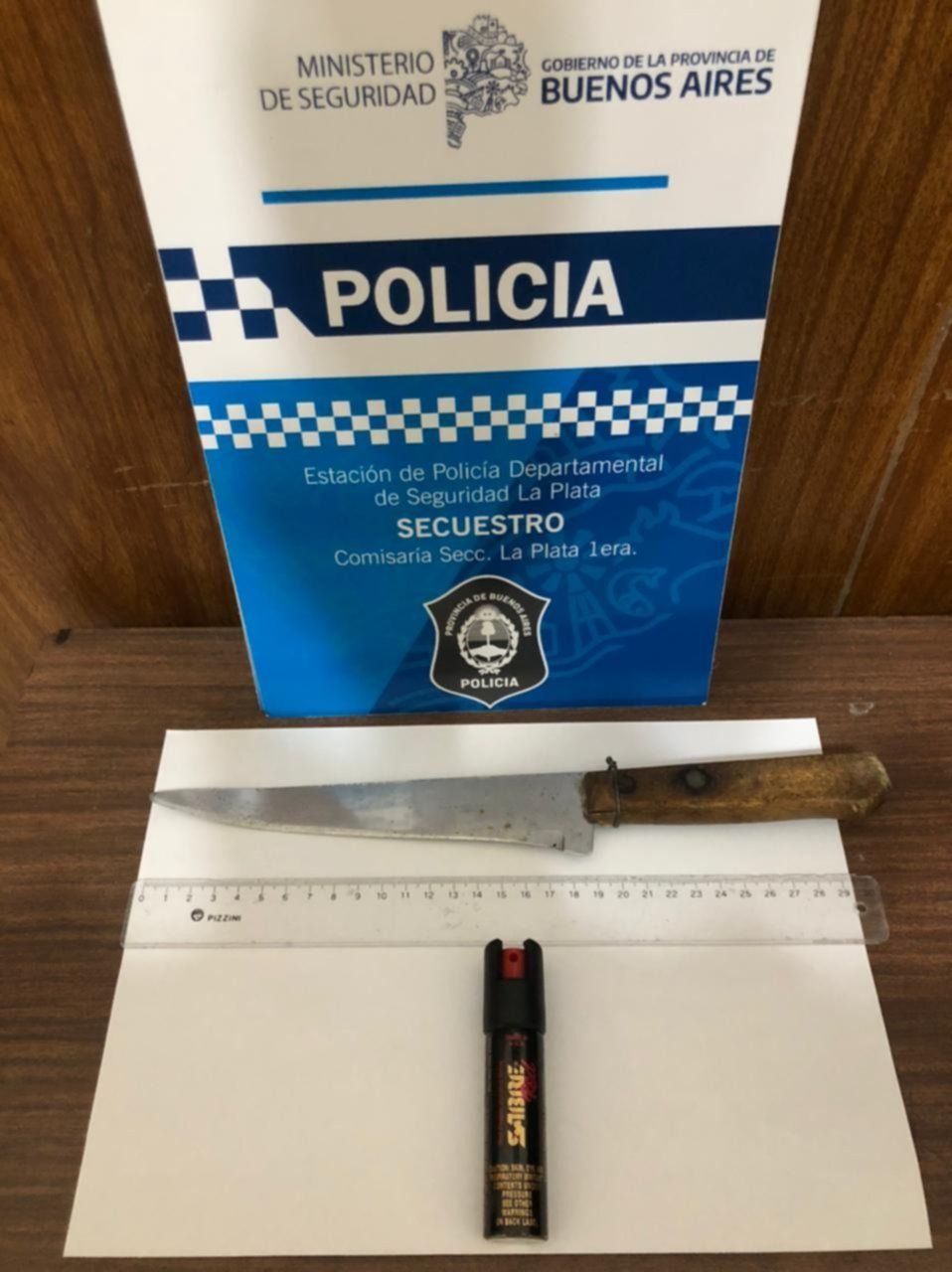 Los uniformados realizaron el cacheo correspondiente y en la campera de uno de los sospechosos hallaron los objetos denunciados por la mujer, como así también el gas. A pocos metros también se pudo encontrar el cuchillo con el que provocaron lesiones en el brazo de la primera víctima, que quedó secuestrado para su investigación.