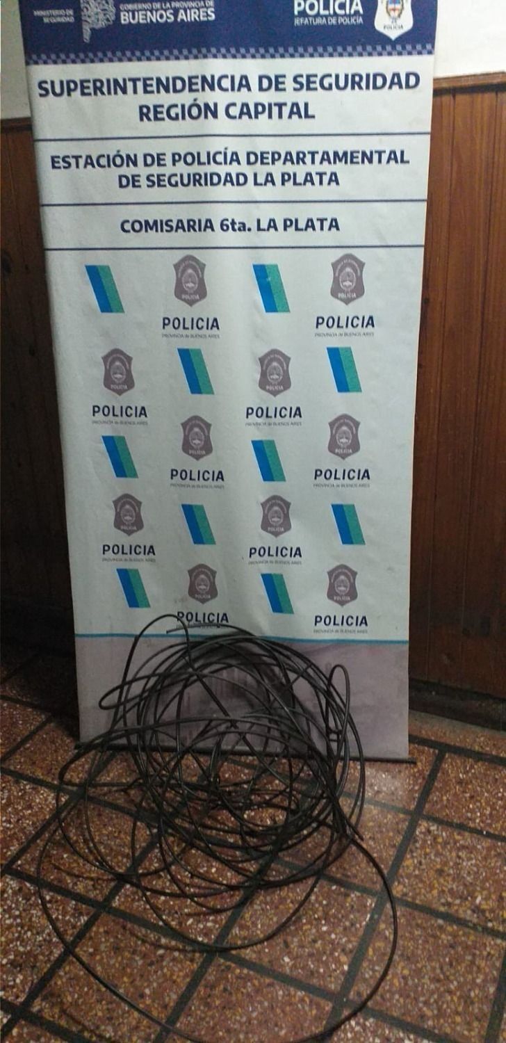 Los investigadores revelaron, además, que los agentes encontraron muy cerca del lugar unos 20 metros de cable de fibra coaxial que el delincuente había descartado poco antes y lo que derivó en la detención del delincuente. El ladrón fue trasladado a la comisaría Sexta y quedó bajo la intervención de la UFI N° 2 del Departamento Judicial de La Plata.