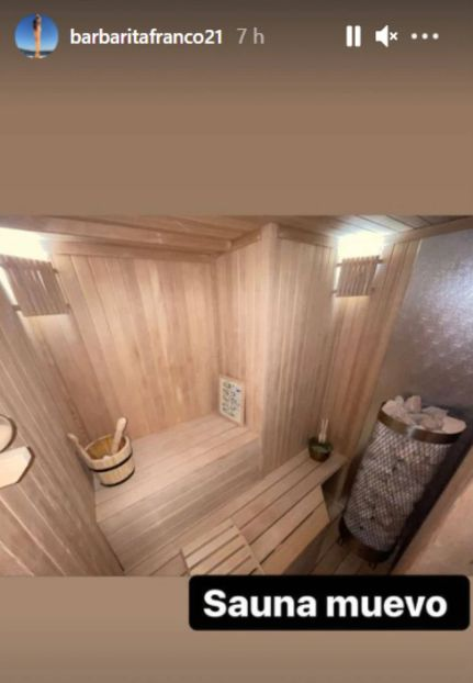 Y no terminó ahí. La modelo a su vez compartió la novedad de la casa: el sauna, en dos niveles y con un canasto de piedras a modo de decoración.
