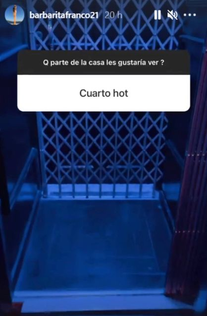 Siguiendo con la recorrida, una persona indagó sobre el “cuarto hot” que tiene la pareja en su mansión. A modo de respuesta, Barby contestó con la imagen de un ascensor antiguo, con puertas tijera y apenas iluminado con una tonalidad azulada.