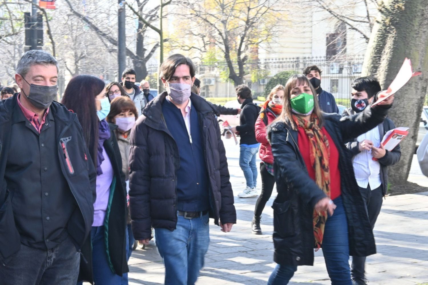 Los precandidatos a diputados nacionales del Frente de Izquierda Unidad Romina del Plá, Néstor Pitrola y Nicolás del Caño, junto a los precandidatos a legisladores provinciales Guillermo Kane y Daniel Rapanelli, y los precandidatos a concejales platenses Luana Simioni y Lucas Stevani, realizaron una caminata por el centro de La Plata. En la recorrida, acercaron sus planteos y propuestas a los vecinos platenses. Además, llevaron a cabo una conferencia de prensa en Plaza San Martín.