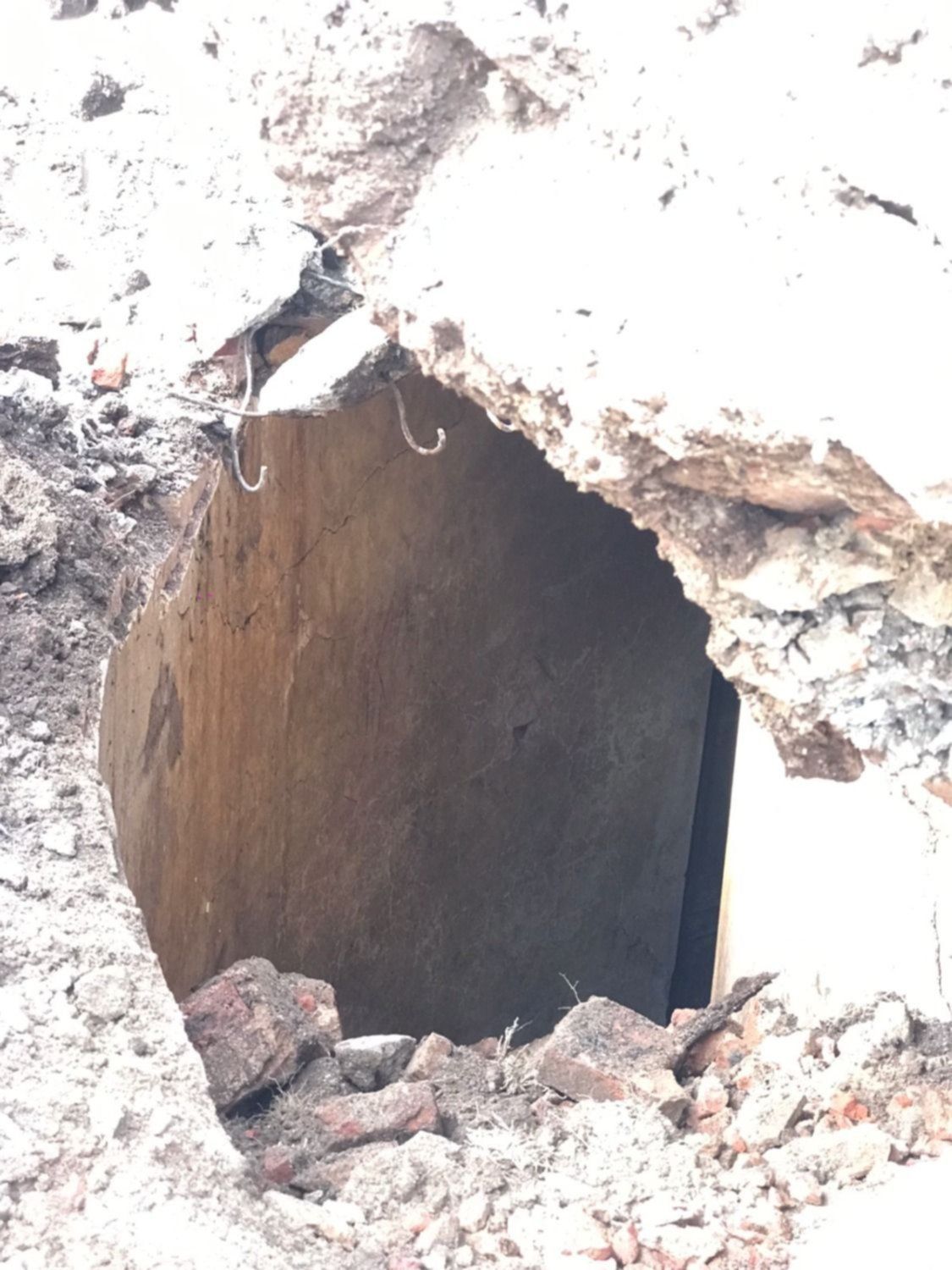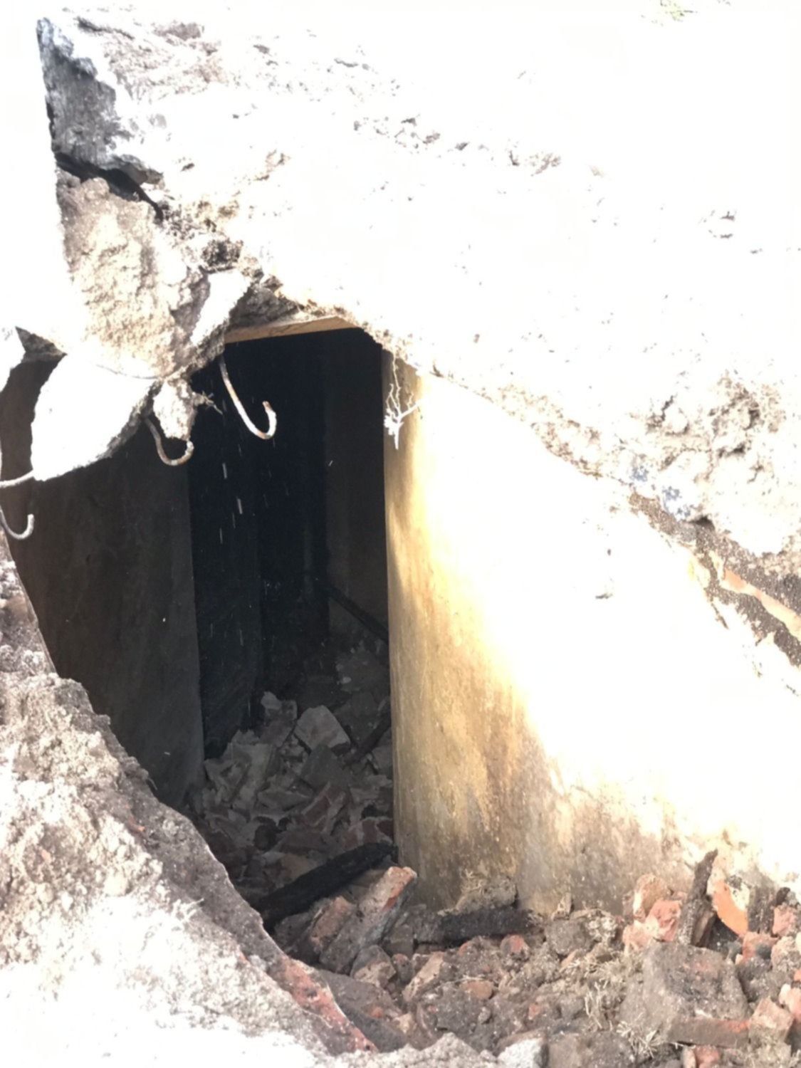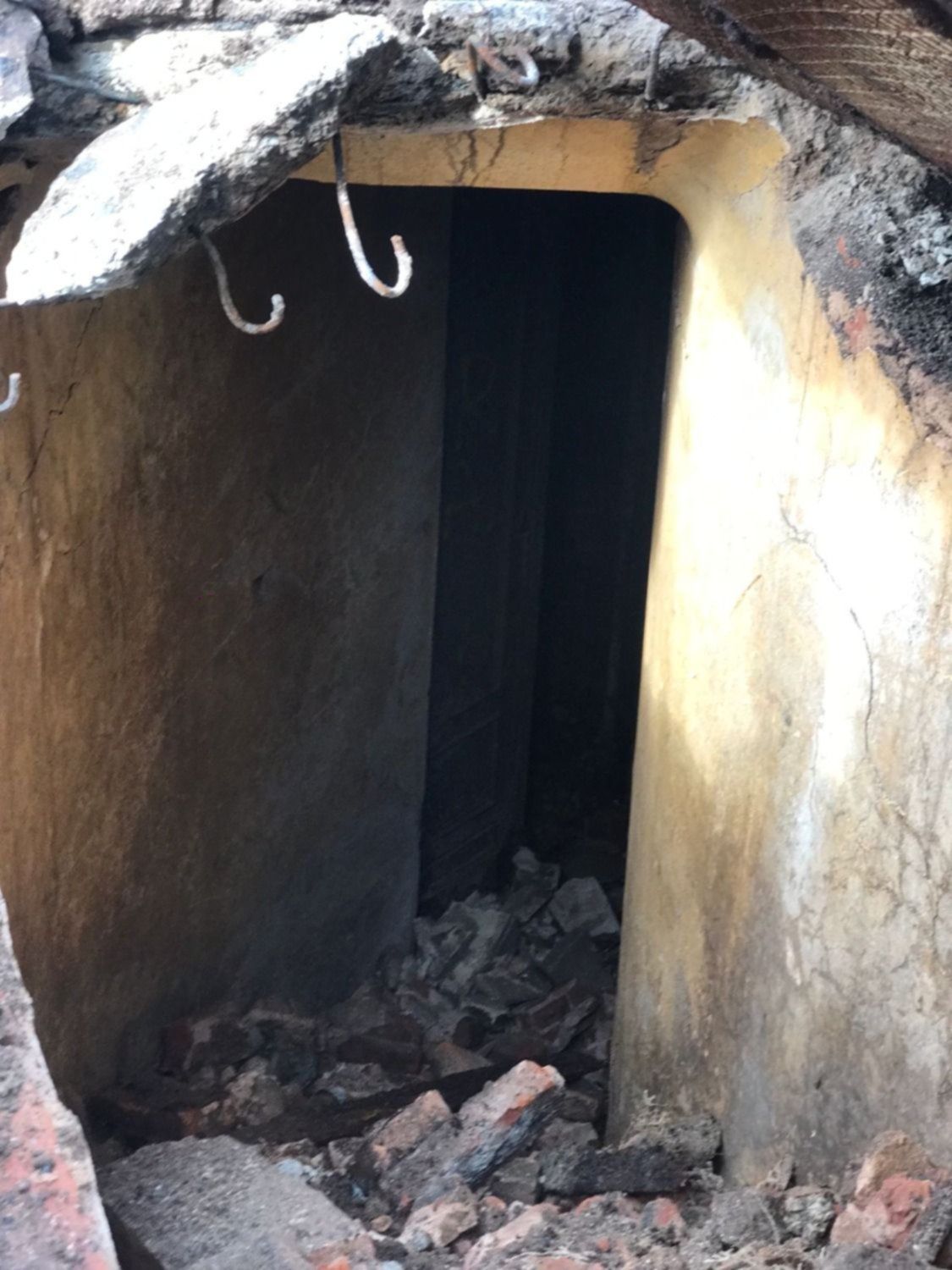 Una vez que lograron remover la tapa que obstruía el ingreso al túnel, los operarios notaron que había una escalera y dos pequeños cuartos. En una de las fotos se alcanza a ver incluso una antigua puerta de doble hoja.