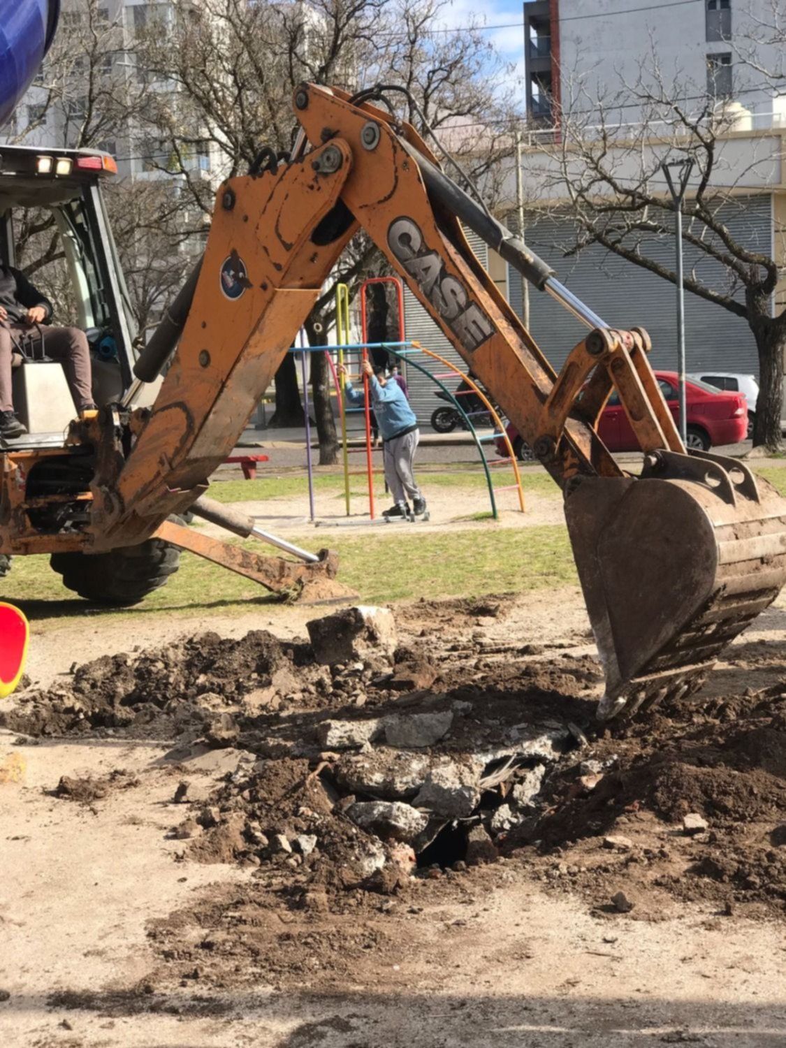 "Trabajadores de la Dirección de Espacios Verdes y Arbolado Público fueron a realizar una intervención al sector donde se encuentran los juegos, ya que habíamos recibido un llamado a la línea telefónica 147 porque había unas piedras que en la caída del tobogán, las cuáles podían causar lastimaduras en los niños", informó el secretario de Espacios Públicos, José Etchart, todavía sorprendido por el increíble hallazgo.
