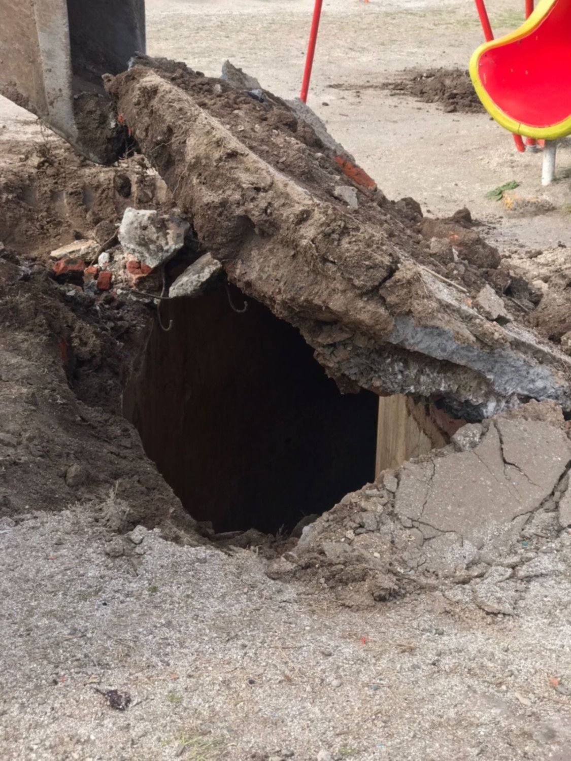 Tal como se ve en las imágenes, los agentes trabajaron con grúas y otras herramientas para remover las piedras que había debajo del tobogán que se encuentra en el corazón del parque y allí hicieron el increíble descubrimiento.
