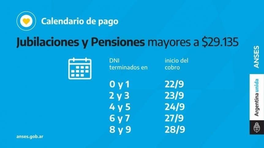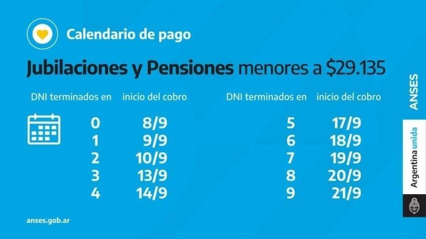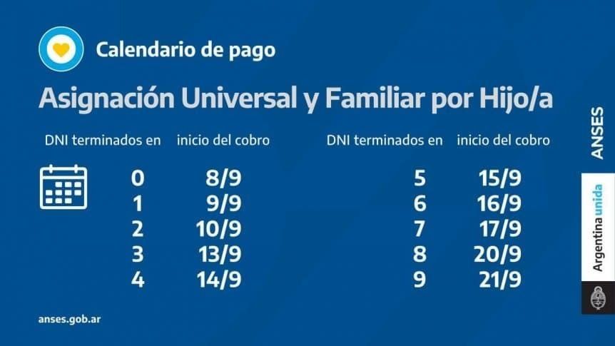 La ANSES dio a conocer el calendario de pagos de septiembre de 2021 para jubilados y pensionados, beneficiarios de Pensiones No Contributivas (PNC), Asignación Universal por Hijo (AUH) y por Embarazo (AUE), Asignaciones Familiares y de Pago Único (Matrimonio, Nacimiento y Adopción) y Prestación por Desempleo.