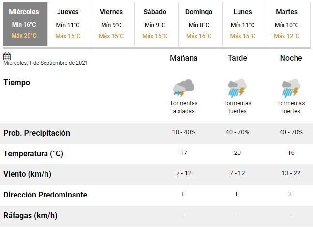 Los especialistas argentinos adelantaron que las condiciones del tiempo irán desmejorando a medida que avance el miércoles y explicaron que "el área será afectada por lluvias y tormentas fuertes, pudiendo estar acompañadas de ráfagas, caída de granizo, intensa actividad eléctrica y abundante caída de agua en cortos períodos".