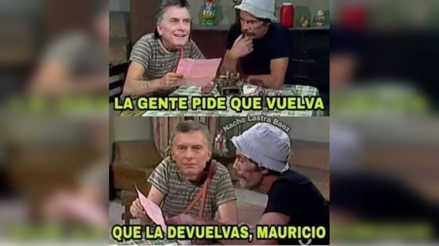 Por otro lado, también el rostro del ex presidente Mauricio Macri reemplaza a la cara del recordado actor Roberto Gómez Bolaños, en una de las más divertidas escenas de El Chavo, en la que intenta leer con mucha dificultad una carta de la Chilindrina a Don Ramón.