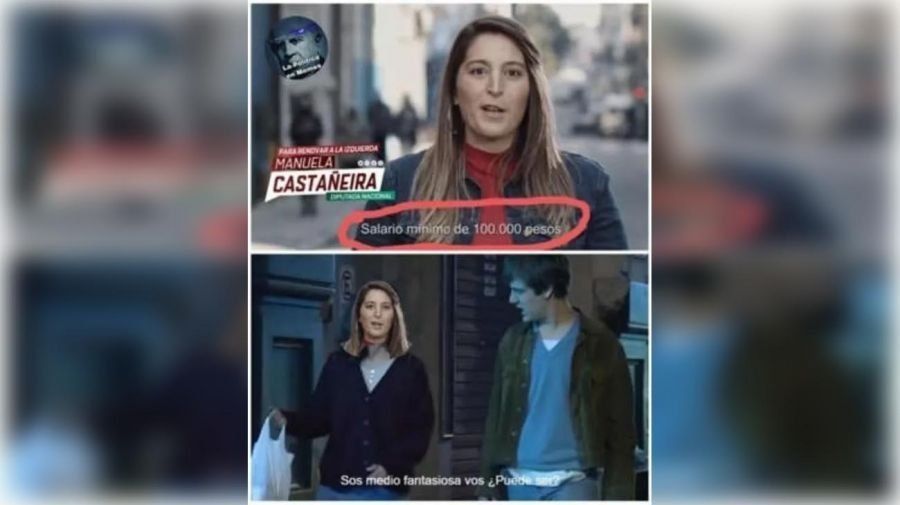 En uno de los más viralizados, apareció la candidata de izquierda, Manuela Castañeira, con su iniciativa de llevar el salario mínimo de los trabajadores en Argentina a $100.000. Una imagen de la serie Okupas acompaña el afiche con la propuesta y una de sus muletillas que reza: "¿Sos medio fantaseosa vos no?".