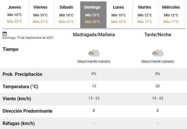 Los especialistas argentinos indicaron que se esperan apenas unos vientos leves de entre 7 a 12 km/h soplando desde el norte y aguardan que el buen tiempo continúe durante los próximos días, con temperaturas de entre 10 y 21°C para los próximos viernes, sábado y domingo.