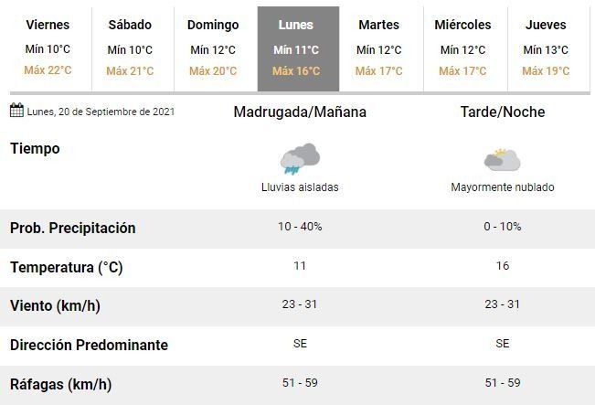 Las malas nuevas se esperan para el próximo lunes. De acuerdo con los especialistas, las condiciones del tiempo desmejorarían rápidamente en el arranque de la semana y por ello no descartan que pudieran registrarse algunas lluvias aisladas en la ciudad durante las primeras horas de la jornada.