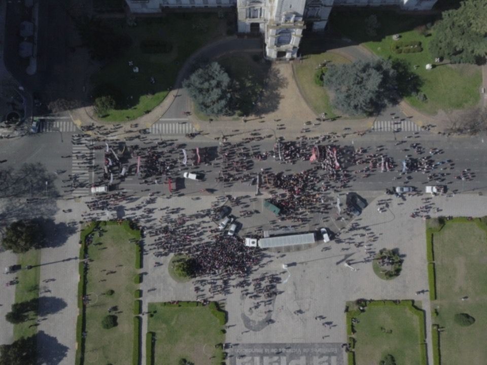 Las columnas caminaron este sábado desde Plaza Moreno, ocuparon la diagonal 74 en sentido a Plaza Italia, hasta 8, para atravesar todo el centro comercial y desembocar en Plaza San Martín para el acto central.