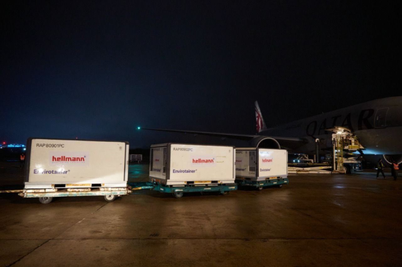 Un total de 1.536.000 de dosis llegaron este sábado al Aeropuerto Internacional de Ezeiza desde Frankfurt, Alemania, en el vuelo LH8264 de la empresa Lufthansa, se informó oficialmente. En tanto, otro cargamento, que consta de 1.336.000 dosis, llegará el lunes, a las 7, en el vuelo LH540, de la misma compañía aérea.