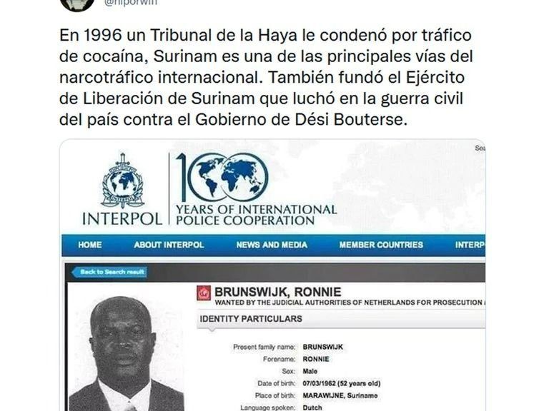 En 1999 un tribunal holandés condenó a Brunswijk a 8 años por narcotráfico, en tanto que en Francia recibió una condena de 10 años en el 2000, por el mismo delito. Pero Surinam no extradita a sus ciudadanos.