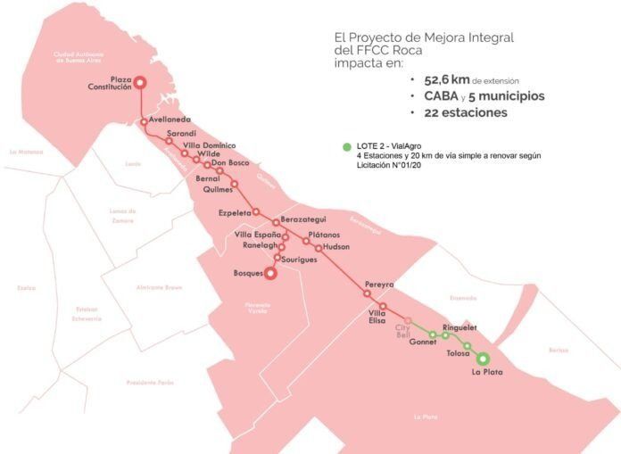 El Ministerio de Transporte de la Nación firmó un convenio con la empresa Vial Agro S.A para la renovación y el mejoramiento de 18,65 kilómetros de vías correspondientes del ferrocarril General Roca, que abarca los tramos entre las estaciones City Bell, Gonnet, Ringuelet, Tolosa y La Plata.