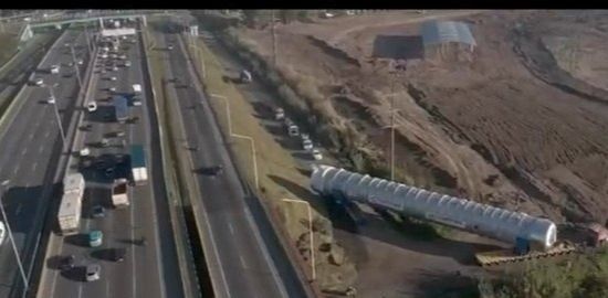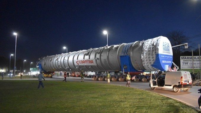 La empresa AESA inició en la noche del jueves el traslado de una columna de destilación de 50 metros de largo y 6 metros de altura, desde Canning hasta Dock Sud, Avellaneda, para ser utilizado para la destilación de combustibles para la empresa Shell.