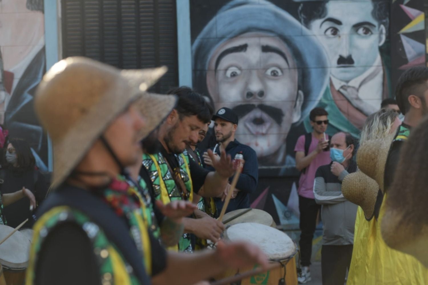 El histórico empedrado del barrio Meridiano V volvió a respirar cultura popular después de un año y medio en el que las calles estuvieron en silencio por la pandemia. Varias cuerdas de tambores y comparsas coparon la calle para protagonizar la primera llamada y el color sonidos invadieron las antiguas casonas que rodean a la Vieja Estación de 17 y 71.