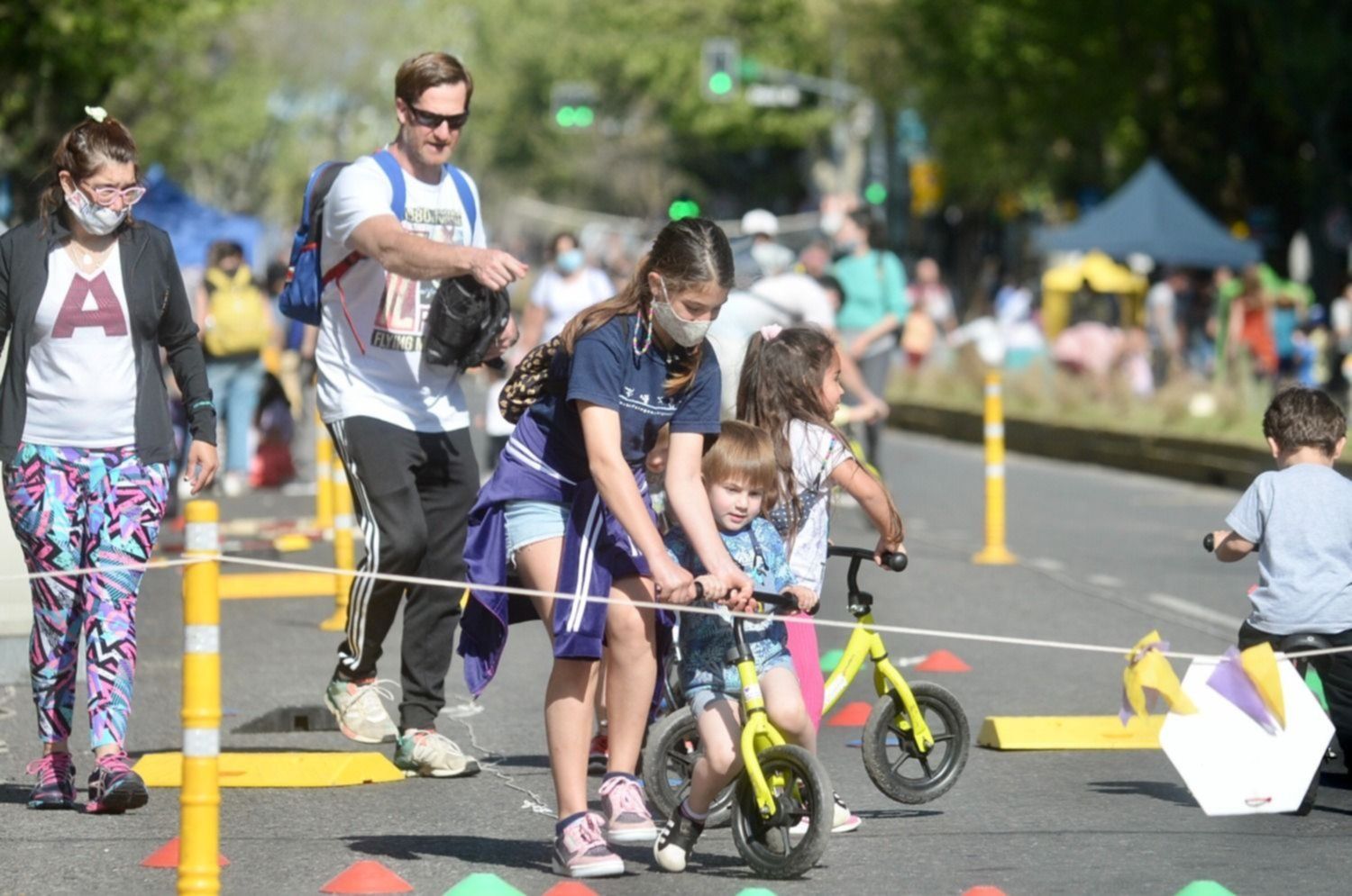 La Comuna puso a disposición la arteria estratégica de 13 entre 45 y 50, cerca de Plaza Moreno, en donde se realizó la jornada del "Corredor de las Infancias", una experiencia que ya se llevó adelante en otras ocasiones y que el año pasado no pudo concretarse por la pandemia.