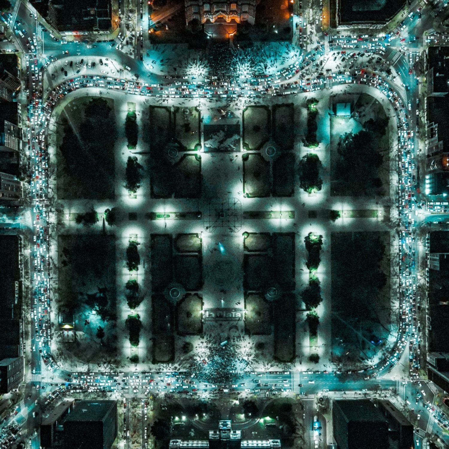 En la foto se puede percibir el marcado diseño de los jardines de la plaza, colmada por una multitud que se acercaba a festejar el logro conseguido por la Selección albiceleste. Los colores celeste y blanco de camisetas y las banderas sumados a las luces led del emblemático espacio platense, conformaron un efecto visual que desde el aire se percibió de manera impactante. La imagen de Gatti se difundió en las redes sociales durante las últimas horas y sigue sumando cientos y cientos "likes" y comentarios de usuarios sorprendidos por su belleza.