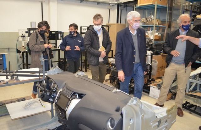 También se detalló el proceso que se realiza para la conversión de vehículos a eléctrico con baterías de litio y el testeo de motos eléctricas para su homologación. Además se visitó la Sala Limpia del GEMA, donde se trabaja con dispositivos que luego serán enviados al espacio, y el laboratorio de ensayos de disparo de Airbags, entre otros.
