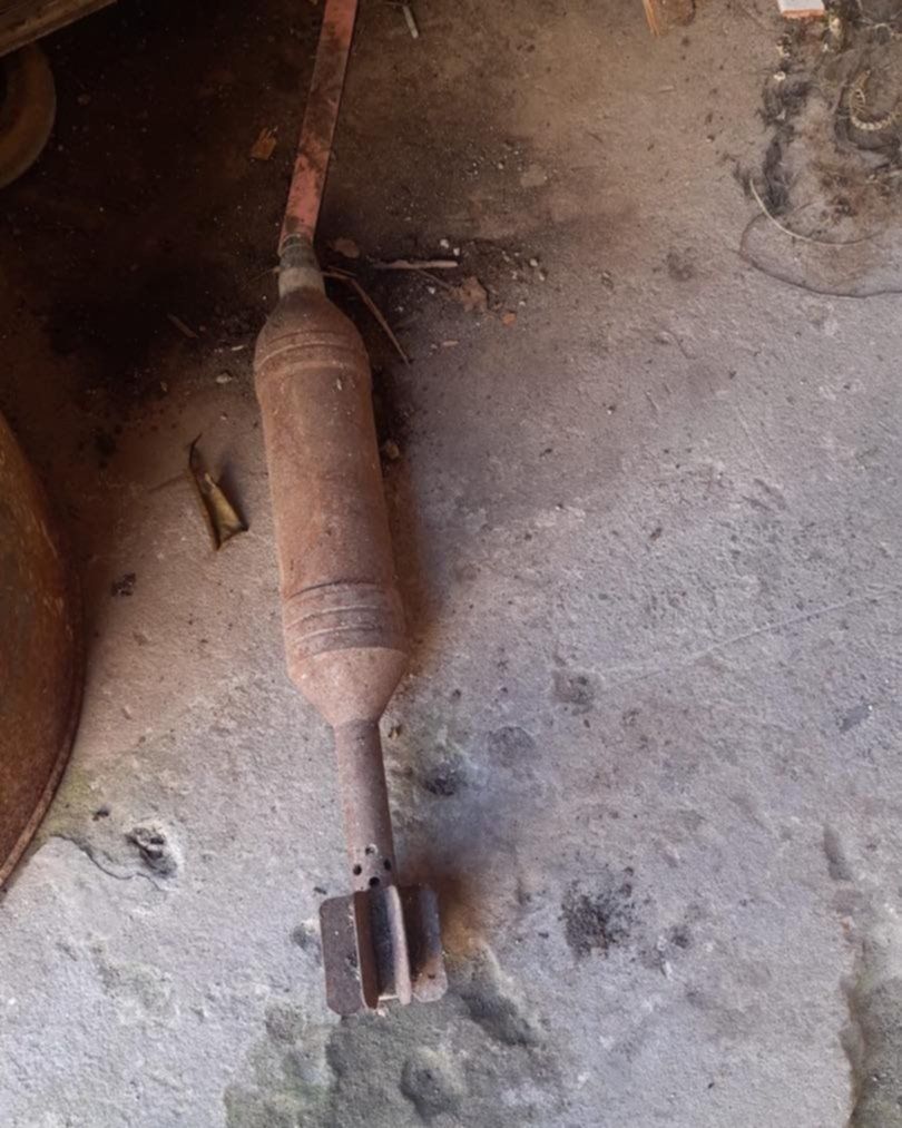 Tal como se ve en las imágenes, el objeto es de gran tamaño y por el óxido que tiene pareciera ser que no está en condiciones de ser utilizado. Sin embargo, tanto el pequeño como la familia se asustaron cuando lo encontraron en el patio y rápidamente dieron aviso a las autoridades para que se lo lleven.