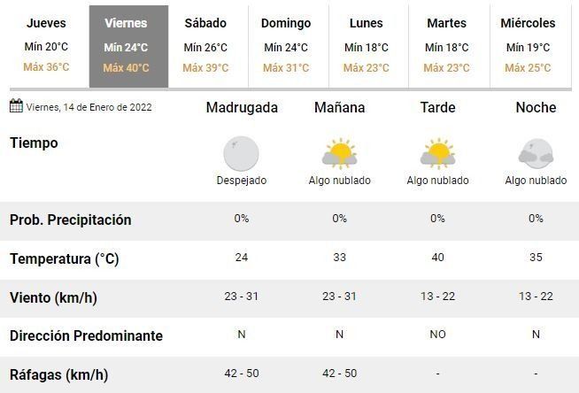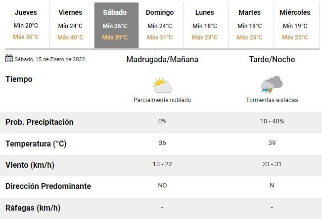 Para el viernes los especialistas argentinos prevén una máxima de 40°C y el sábado de 39°C. En el arranque del fin de semana llegarían finalmente las esperadas lluvias y el inicio del fin de la ola de calor, ya que se prevé la formación de tormentas hacia la tarde y noche de la jornada.