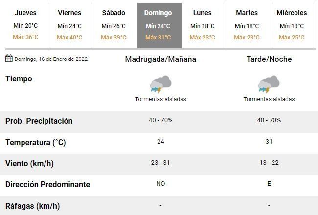 El alivio finalmente llegaría a partir del domingo, con tormentas y lluvias aisladas y una máxima que descendería hasta los 31°C.
