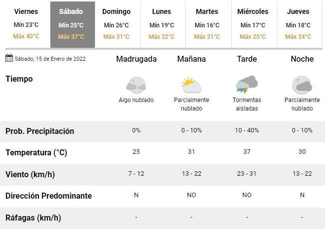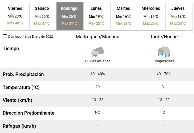 El domingo se espera una máxima 31°C pero ya sin sol, con lluvias más aisladas y chaparrones y el lunes la máxima descenderá fuertemente hasta los 22°C, también con tormentas. A partir de entonces, de acuerdo con los especialistas, habrá respiro: durante los siguientes días de la semana las temperaturas rondarán los 24°C de máxima, muy por debajo de lo que fueron estas últimas jornadas.