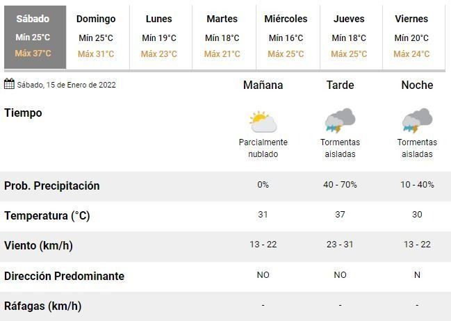 Finalmente la ola de calor extremo que se azotó la ciudad y hasta llevó la sensación térmica al punto más alto registrado en los últimos 60 años, se termina. Los expertos del Servicio Meteorológico Nacional (SMN) pronostican una máxima de 37°C para este sábado, pero también adelantaron que durante la tarde y la noche se desatarán lluvias y tormentas aisladas sobre la ciudad trayendo consigo el ansiado descenso de las temperaturas.