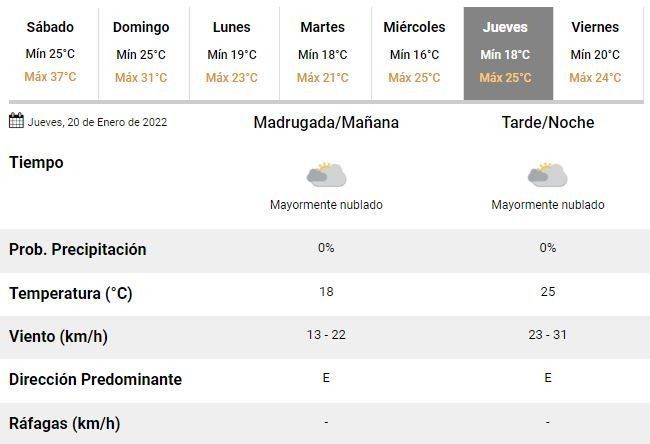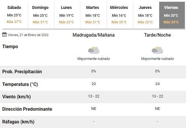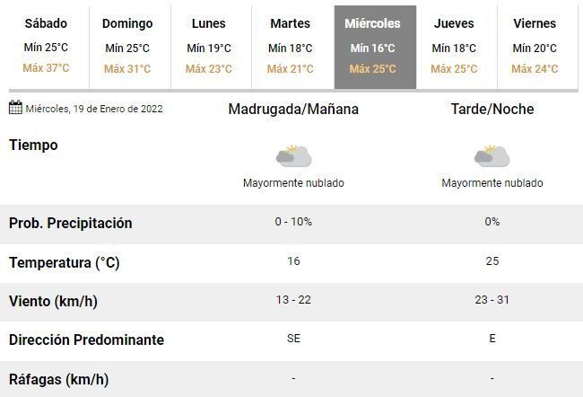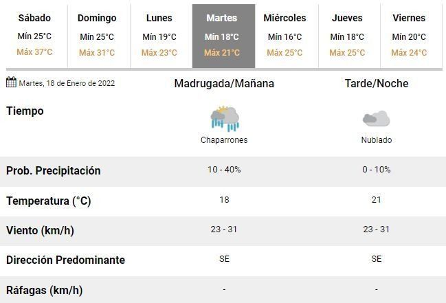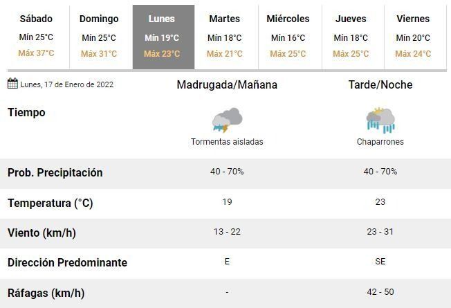 Para el domingo los especialistas pronostican una jornada marcada por las precipitaciones, con tormentas aisladas durante toda la jornada y una temperatura oscilando entre 25 y 31°C. Será el último día de agobiante calor en la ciudad y la antesala de una semana inestable pero con máximas de entre 21 y 25°C.
