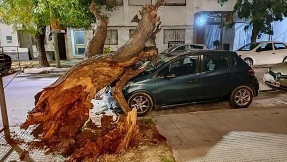 El terrible episodio se produjo en las últimas horas en La Plata, pero afortunadamente no terminó en tragedia. Los fuertes vientos de la última tormenta que azotó a la ciudad quebraron un árbol y el enorme tronco cayó sobre un auto estacionado, que terminó seriamente dañado.