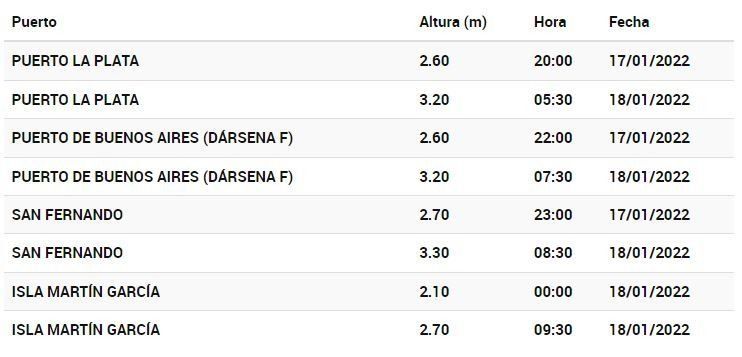 No obstante, los expertos indicaron que la altura podrá variar a lo largo de la jornada dependiendo de las condiciones del clima, la dirección del viento y la velocidad con que este sople, todo lo cual afectará sensiblemente la sudestada que se prevé para las próximas horas.
