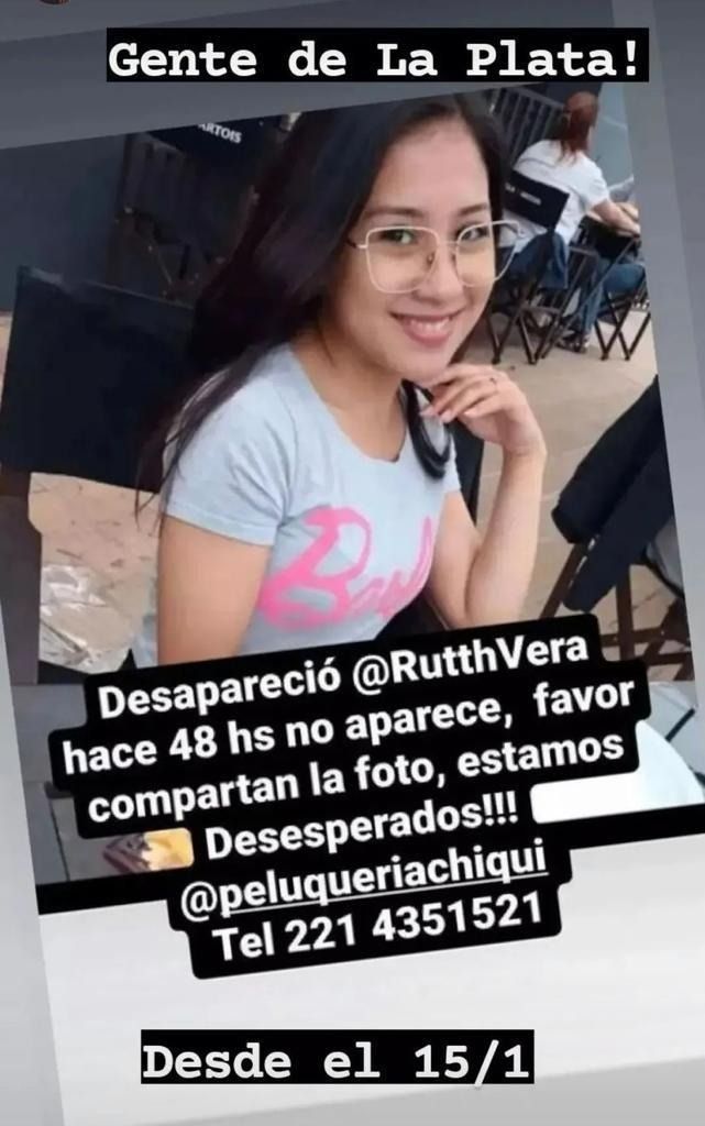 La familia de Ruth Vera está viviendo momentos angustiantes luego de la desaparición de la joven de 21 años, de quien no se sabe nada desde el sábado pasado cuando llegó a su casa de 45 entre 6 y 7.