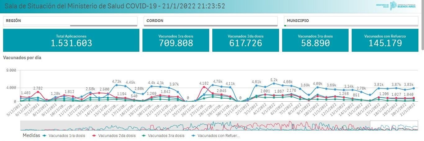 En efecto, hay 709.808 platenses que se dieron la primera dosis, de los cuales 617.726 accedieron a la segunda (el 87%) y 204.069 a la tercera dosis o a las dosis de refuerzo, según el caso, lo que representa el 28,74% del total que arrancó con el esquema de vacunación.