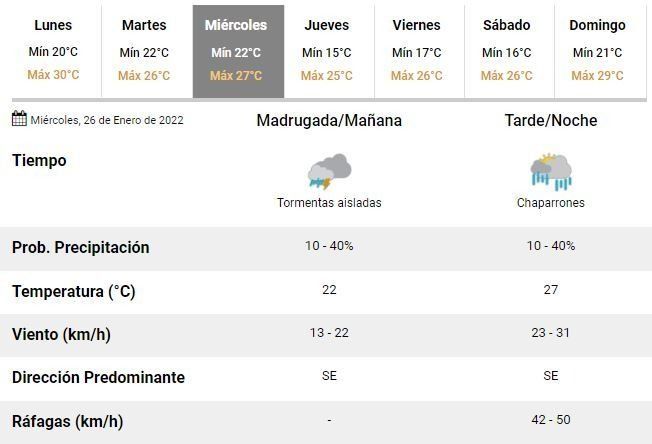 Una realidad similar se espera, en tanto, para el próximo miércoles y es que los expertos anticipan otra jornada inestable, con probabilidades de lluvias y tormentas aisladas durante la mañana y chaparrones por la tarde. Todo se daría en el marco de un clima templado, con una mínima de 22°C y una máxima en torno a los 27°C.