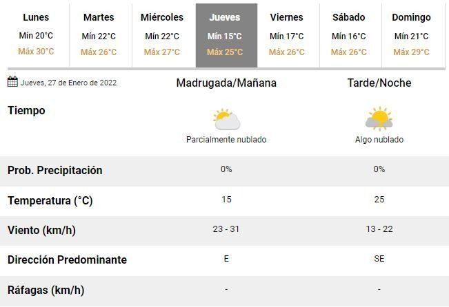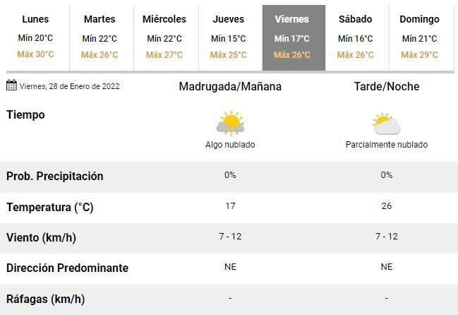 Para el fin de semana, por último, se esperan condiciones similares: cielos despejados, máximas de 26 y 29°C para el sábado y el domingo, respectivamente; y buenas condiciones de tiempo ya sin la amenaza de las lluvias en el horizonte.
