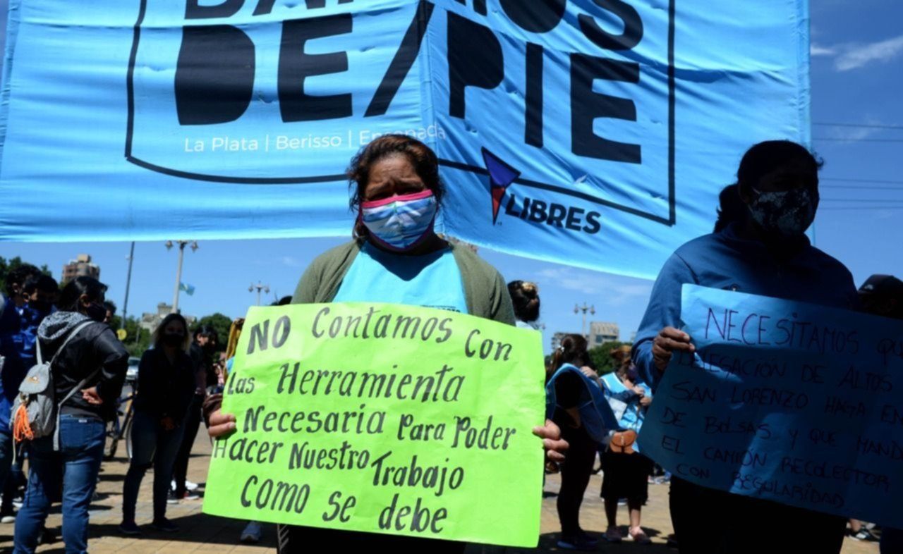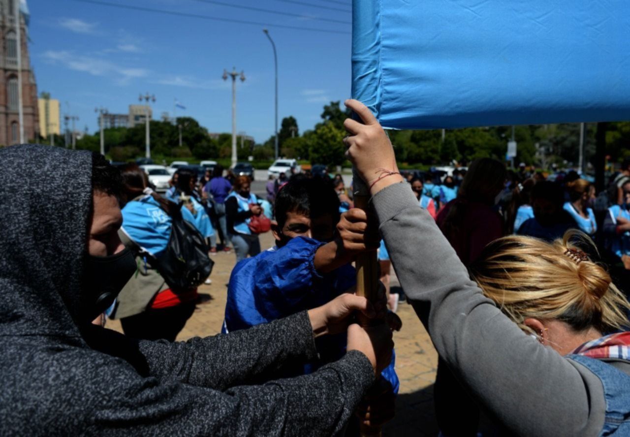 Barrios de Pie se movilizó esta mañana en La Plata y por estas horas realiza una manifestación en pleno centro de la ciudad para visibilizar ante las autoridades municipales su reclamo. "Necesitamos que la comuna nos ayude con los alimentos", señalaron en el marco de la protesta.