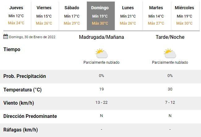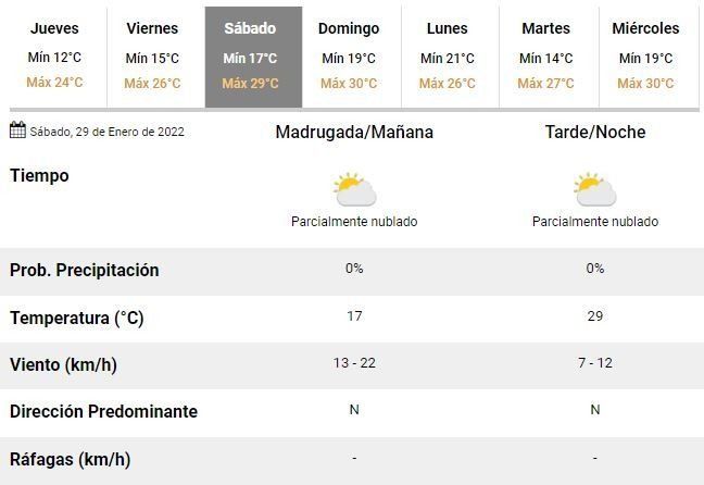 El mismo clima se repetirá durante el cierre de la semana. Los expertos prevén un viernes con una temperatura de 15 a 26°C, cielo algo nublado durante casi toda la jornada y despejado hacia la noche y vientos leves soplando mayormente desde el Este.