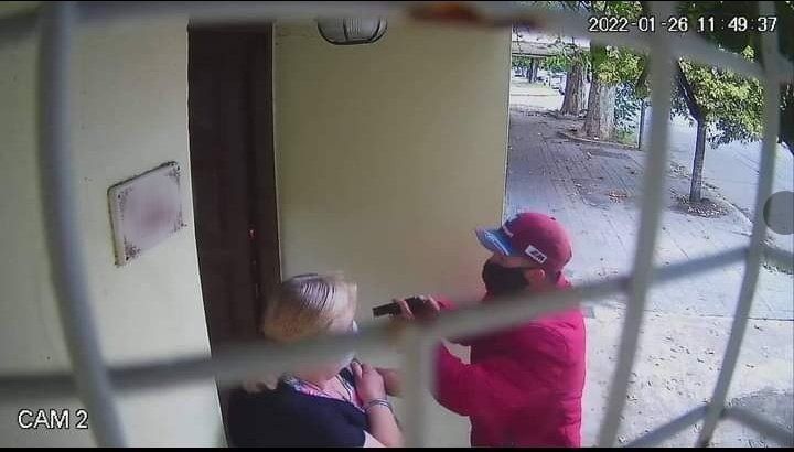 El salvaje ataque quedó registrado en las cámaras de seguridad de la zona. En el video se observa cómo dos motochorros advirtieron que la mujer estaba esperando en la puerta de la casa y uno de ellos se bajo del rodado para robarle.