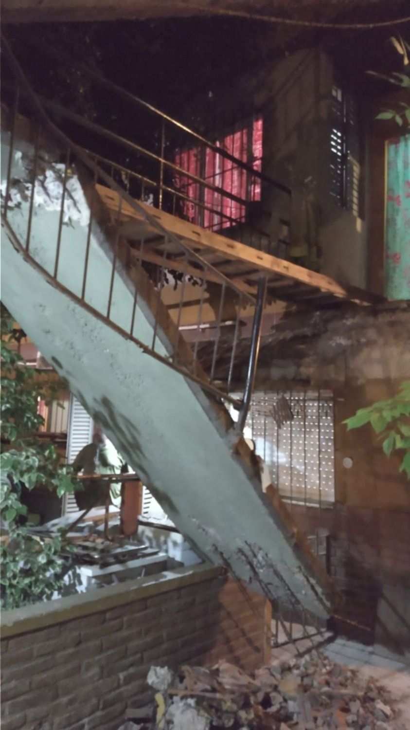 "Durante las actuaciones, pusimos a resguardo a los vecinos afectados y bajamos a dos familias qué se encontraban aisladas en un segundo piso al no poder descender por el derrumbe de la escalera", informaron en la Comuna.