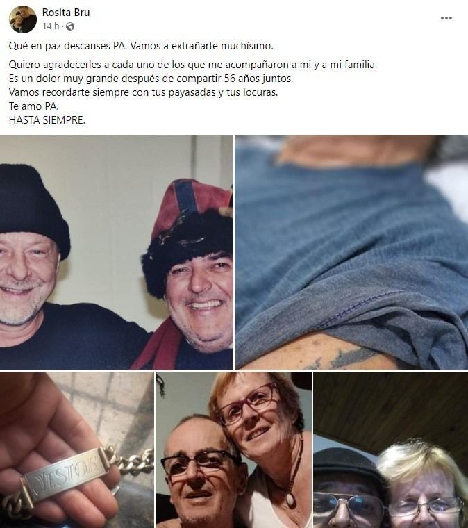 Por la noche, después del último adiós a Néstor, Rosa escribió unas palabras en su cuenta de Facebook para agradecer el acompañamiento de la comunidad y recordar a su pareja. "Que en paz descanses, pa. Vamos a extrañarte muchísimo. Quiero agradecerles a cada uno de los que me acompañaron a mi y a mi familia. Es un dolor muy grande después de compartir 56 años juntos. Vamos recordarte siempre con tus payasadas y tus locuras. Te amo, pa. Hasta siempre", fueron sus palabras.
