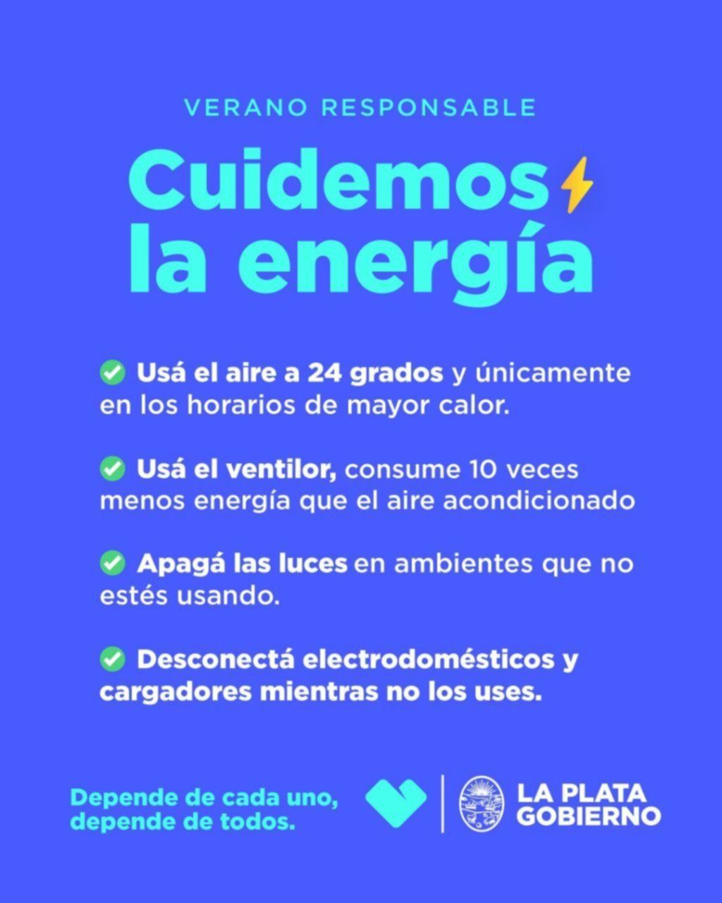 La Comuna recordó además que para mantenerse informado sobre la ola de calor que se avecina se encuentran los canales oficiales de información: el sitio web de la Municipalidad de La Plata www.laplata.gob.ar; las cuentas de Facebook y Twitter de la Municipalidad de La Plata; ‘Defensa Civil MLP’ en Twitter y Facebook; y ‘Clima MLP’ en Twitter.